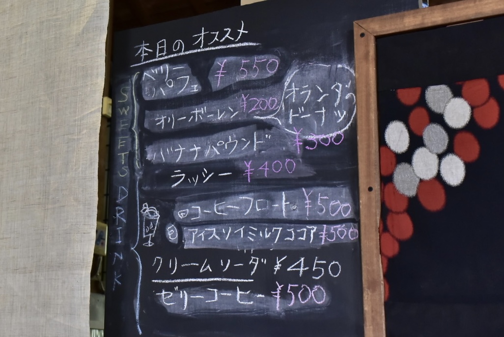 その日によって変わるオススメのメニューの黒板を見てオーダー。