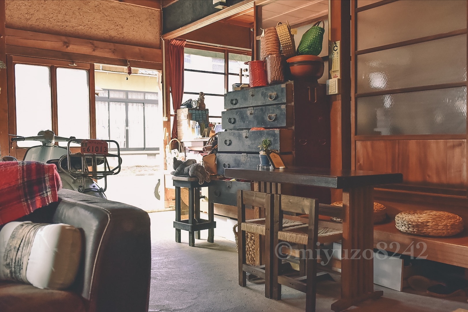 2Rinの店主はこの古い街並みが残るちりめん街道に移り住み、昔機織りされてた広い土間を活かして古き良きモノを愛する人達に好んで来て頂けるようなお店を展開していくことになりました。