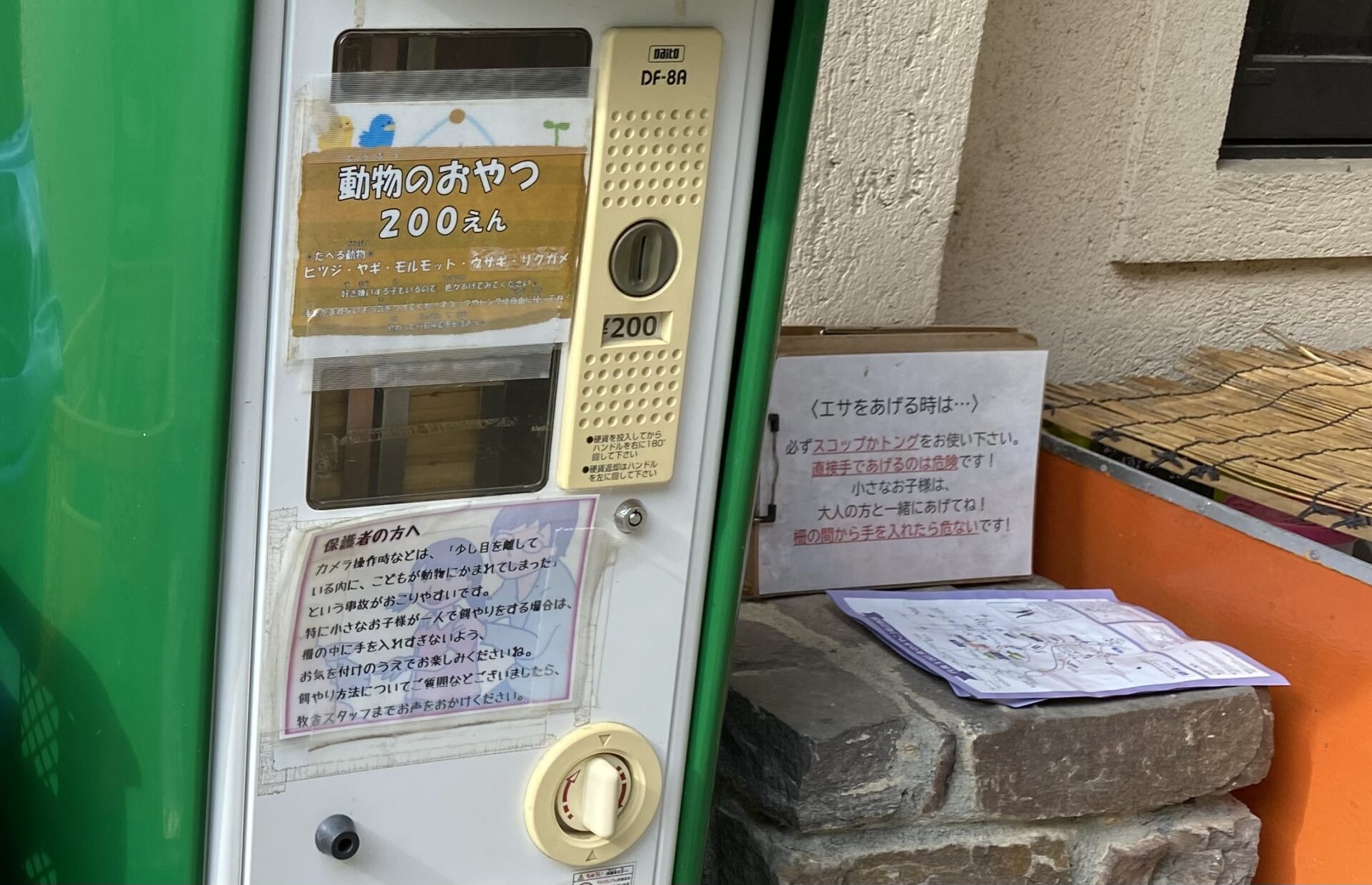 エサをあげたいときは、動物園に入ってすぐ右手に見える「動物のおやつ」を200円で購入を🙌