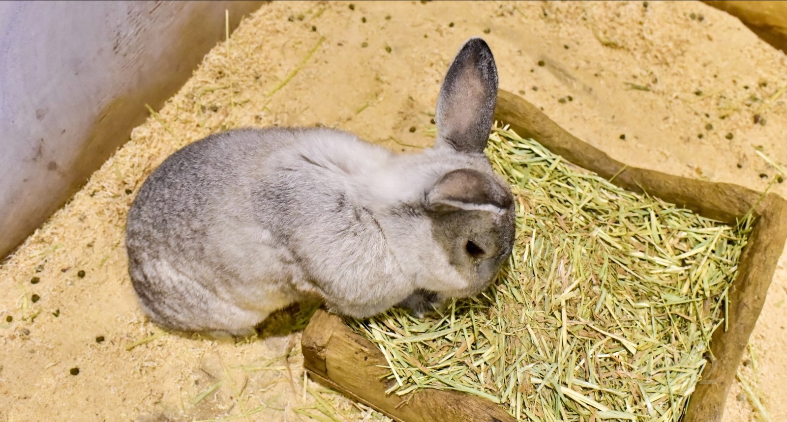 普段は外にいるらしいけど、この日は外が暑いので室内にいたウサギ🐇皆んなからエサをもらえるからか、ぽてっとした体型で可愛かった🥳