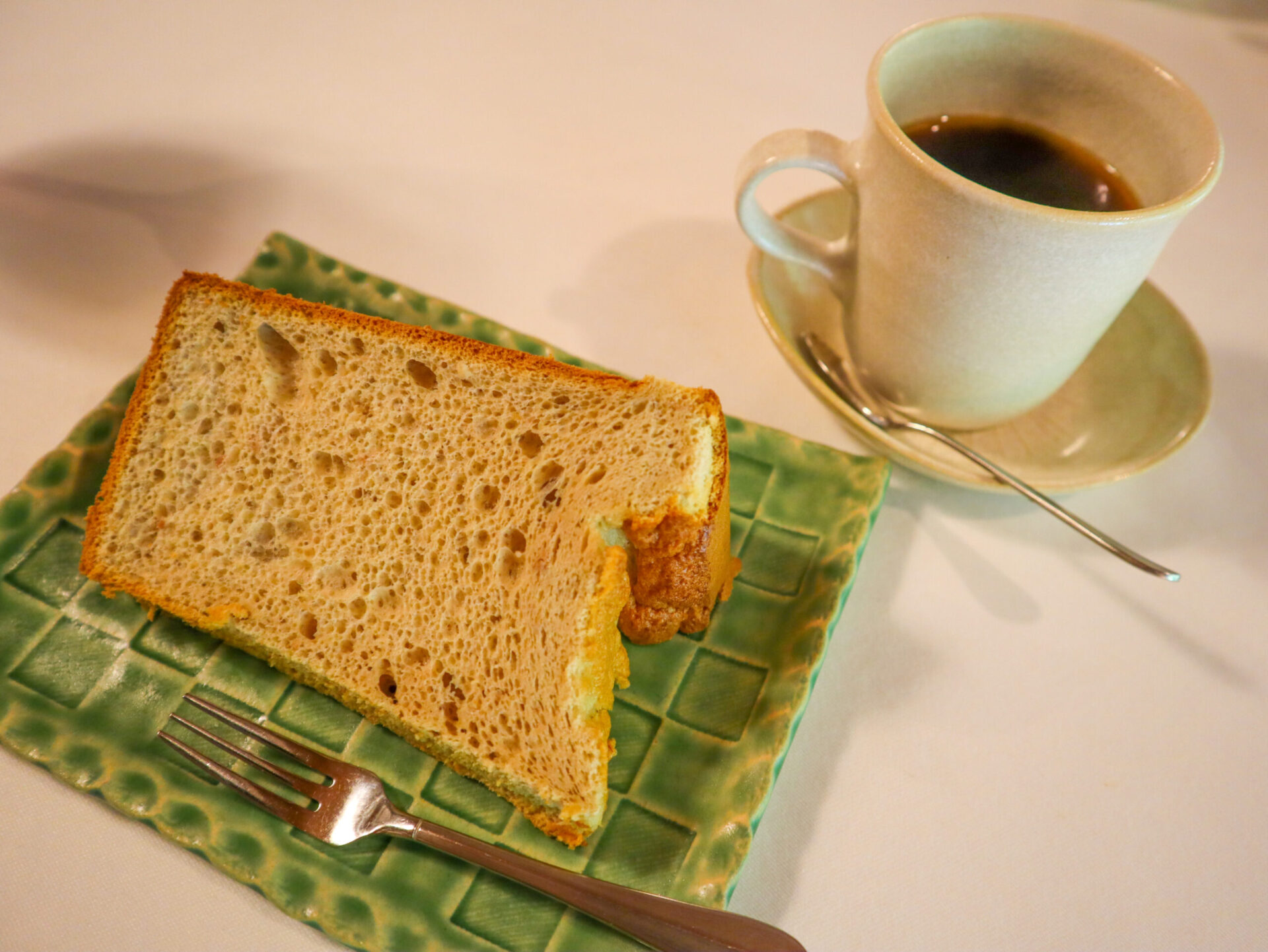 ドリンクの他、手造りシフォンケーキセットも頂ける✨