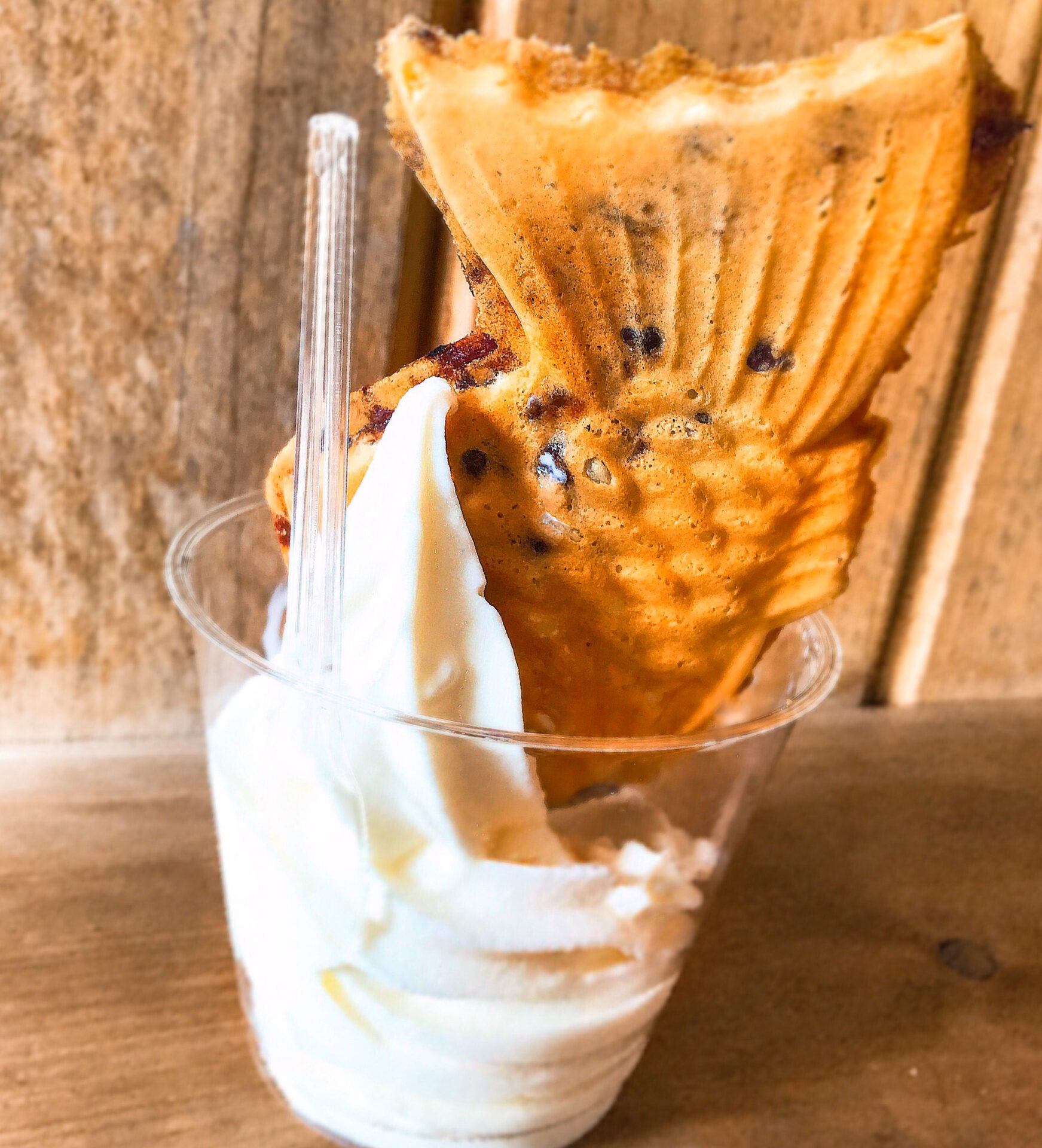 中から出てきたカスタードとソフトクリームを一緒にすくって食べるのも美味しかった🥺