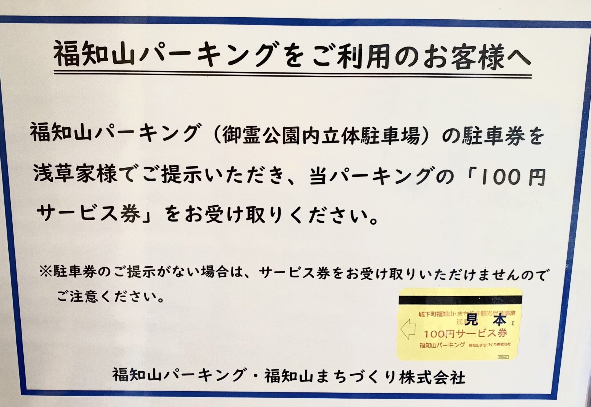 お店には駐車場がないけど、福知山パーキングまでの駐車券を提示すると100円サービス券がもらえる😆