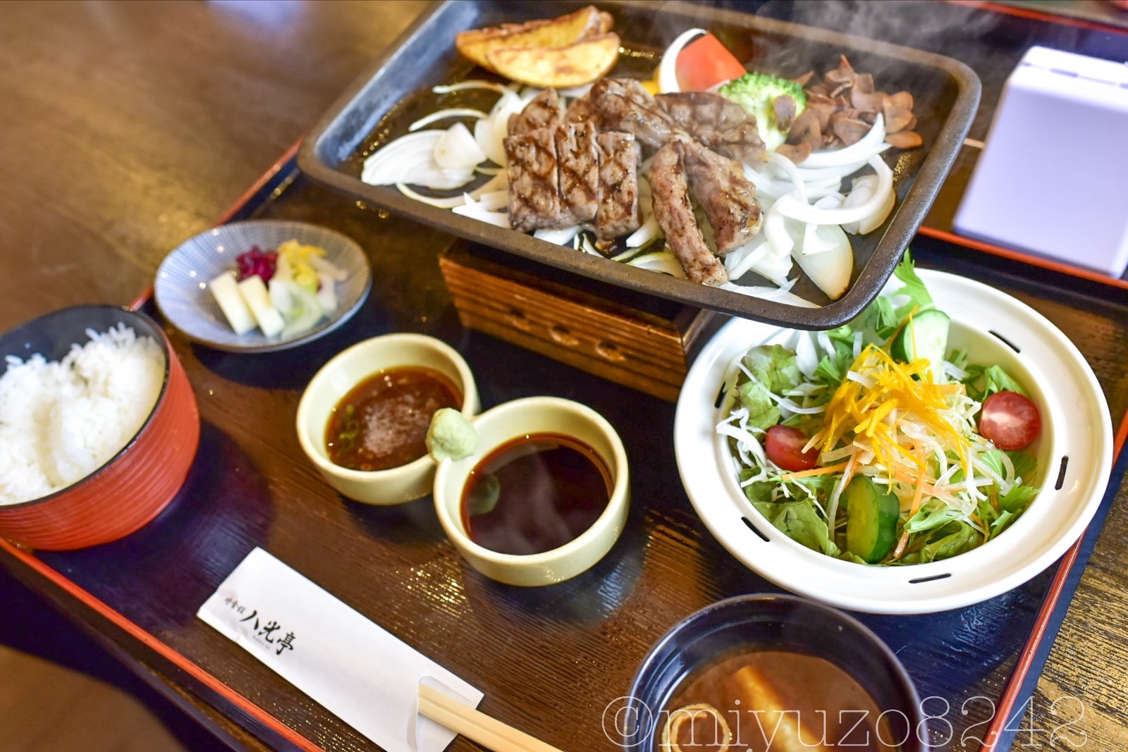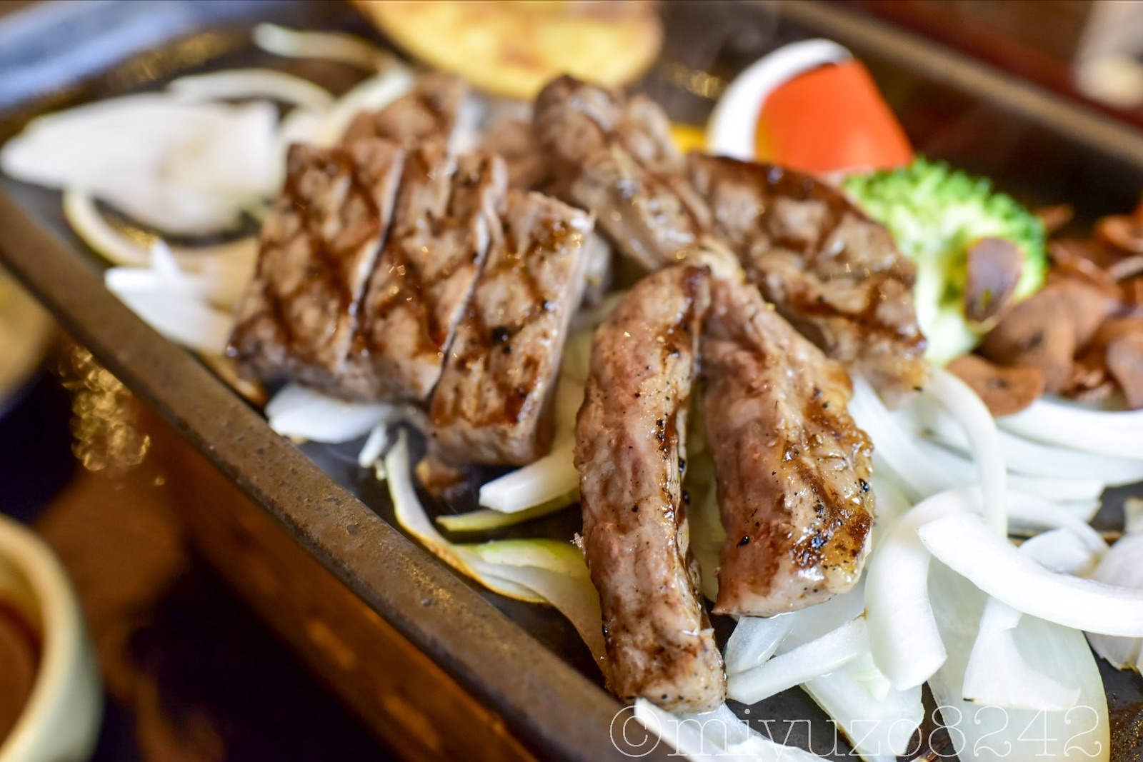 あつあつ鉄板に乗ってくるサーロインステーキも贅沢😆