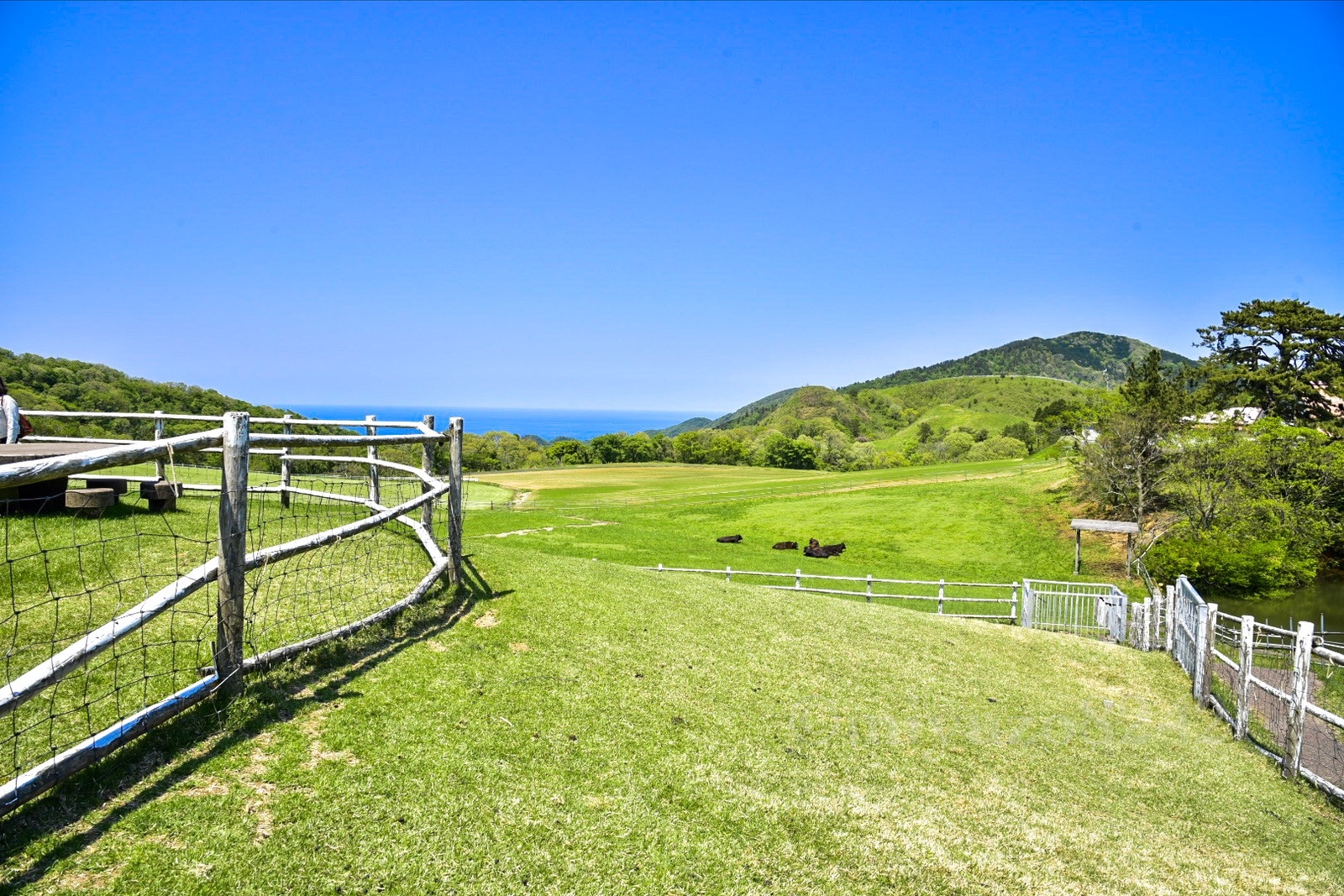草原の向こうには日本海が広がってて見晴らし最高〜🌊