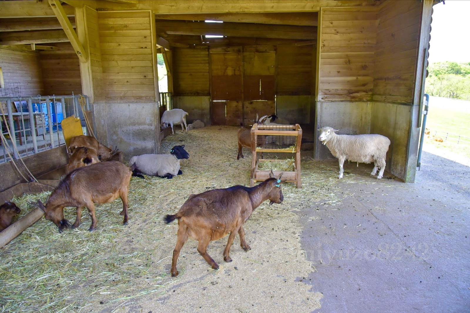 舎の中ではヤギも羊も同じ空間で生活してるのね(´,,•ω•,,)