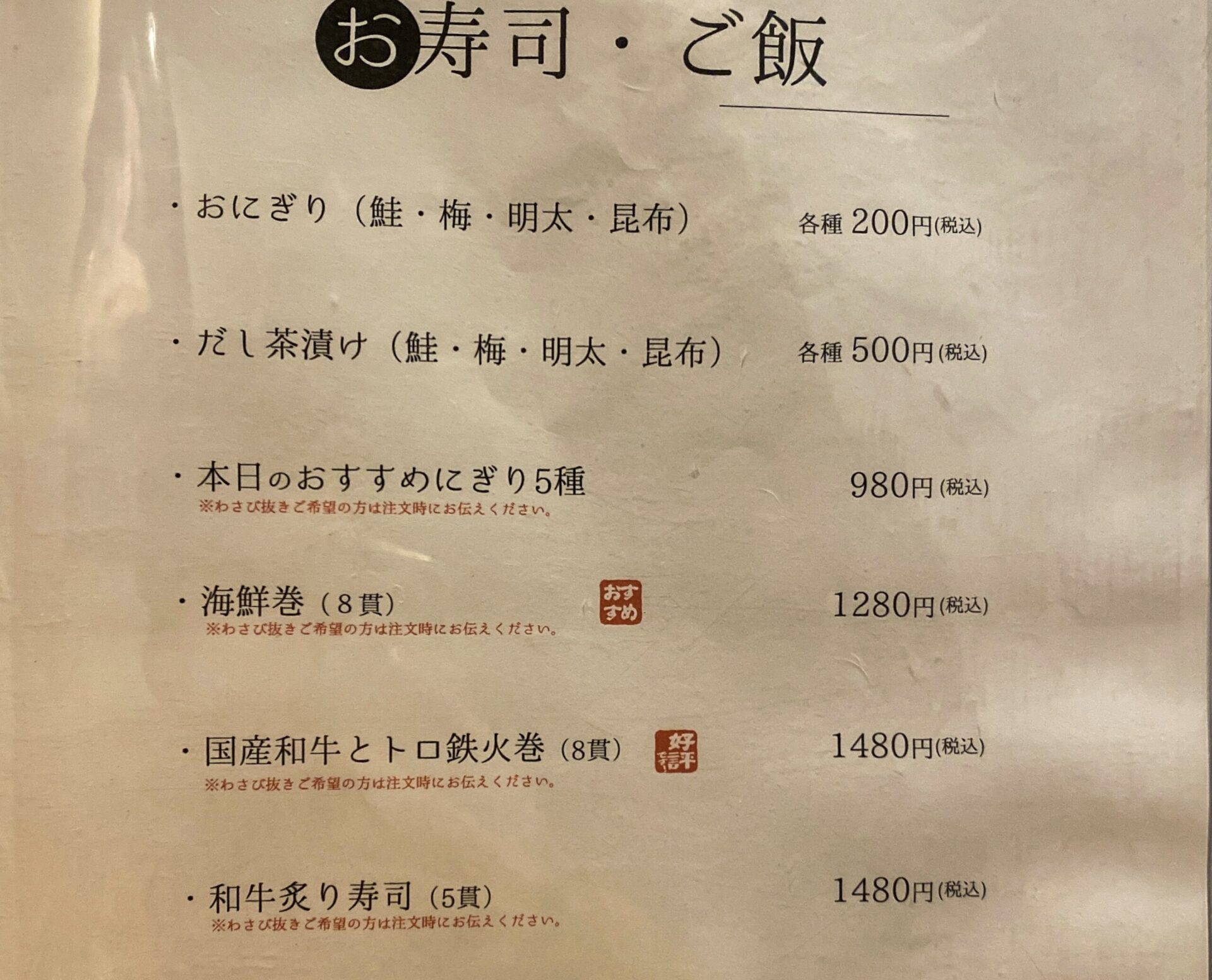 お肉も魚もメニューに用意されてて、海鮮巻や和牛の炙り寿司なんてのも🤗