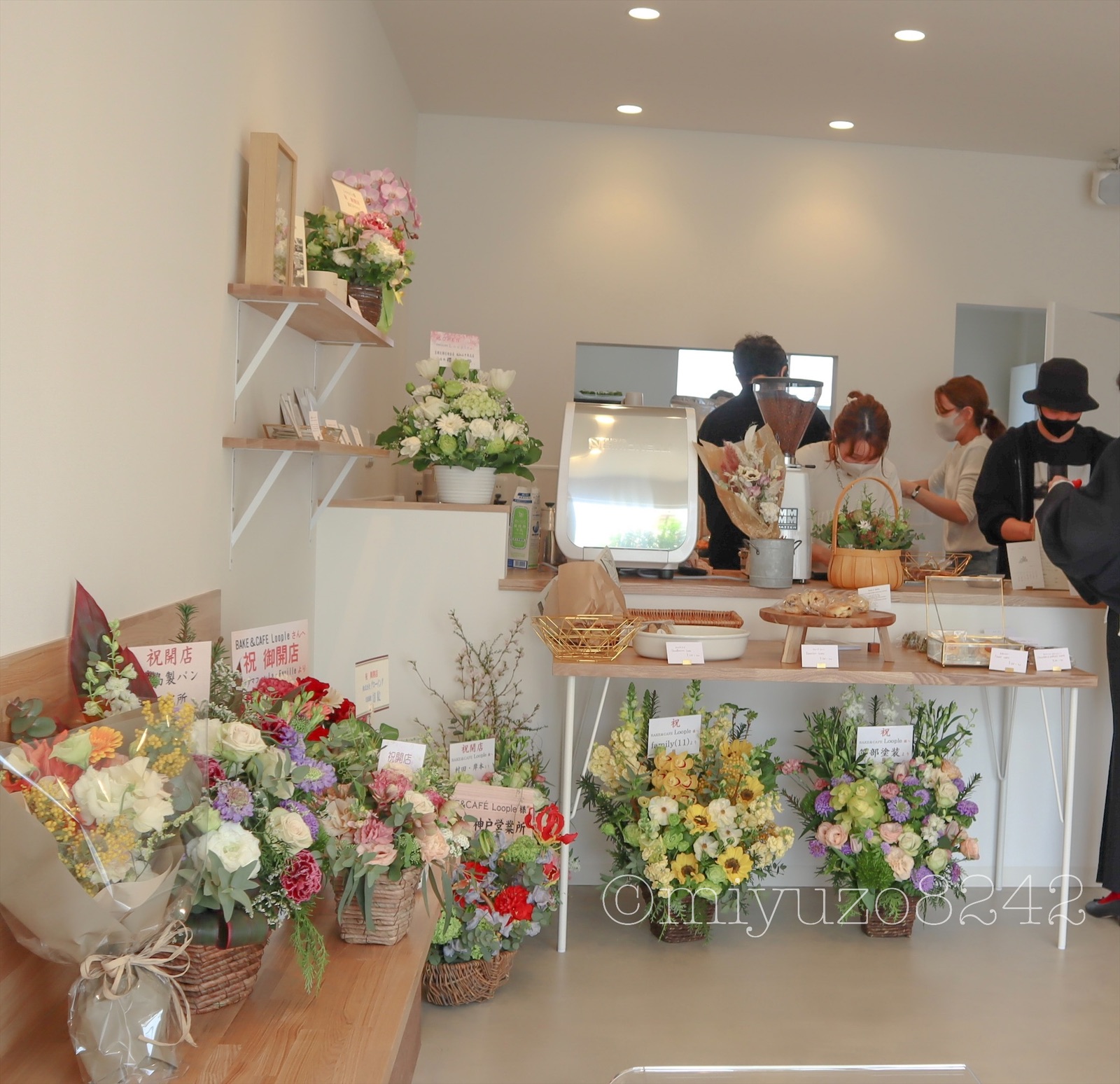 いっぱいお祝いのお花が届いてて、店内の中もお花だらけやった💐