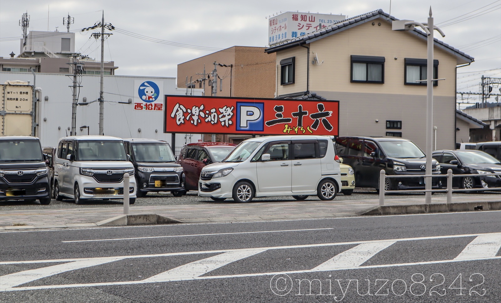 駐車場については、お店の道路を挟んだ向かい側にある三十六の看板のある砂利のスペースで、6台分のみ駐車可能🚗!(2台で来たら縦列駐車を)