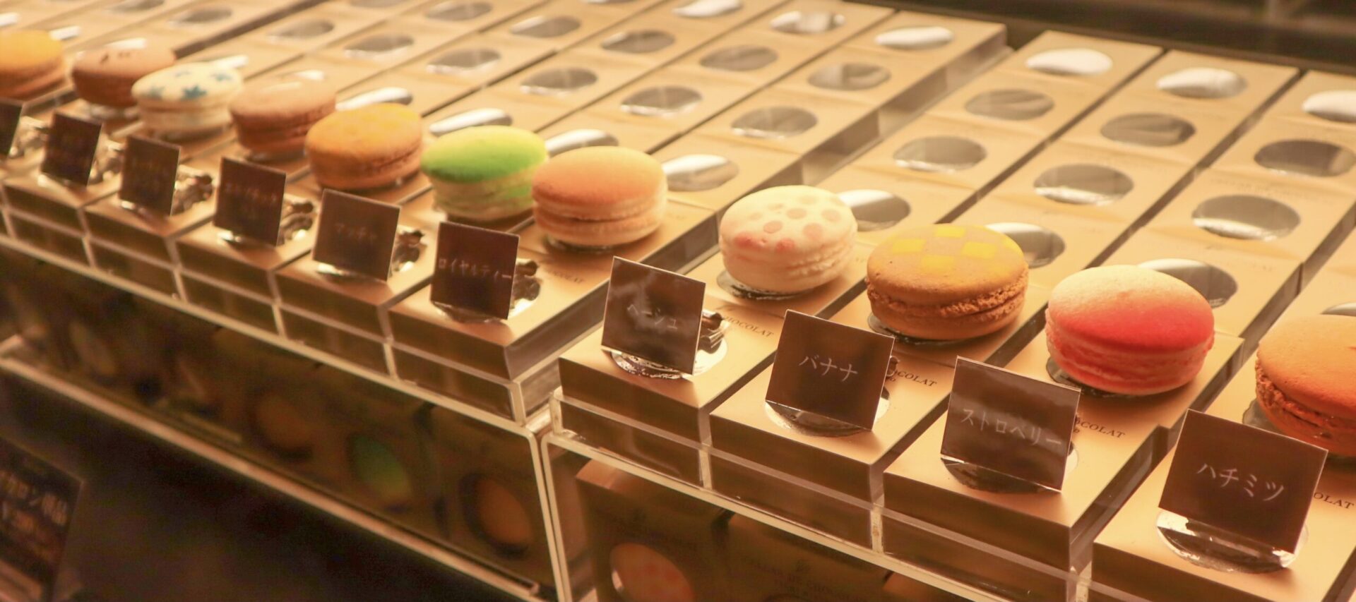 店内入り口入って左手に進むと、チョコレートとマカロンがずらっと並ぶ部屋が!