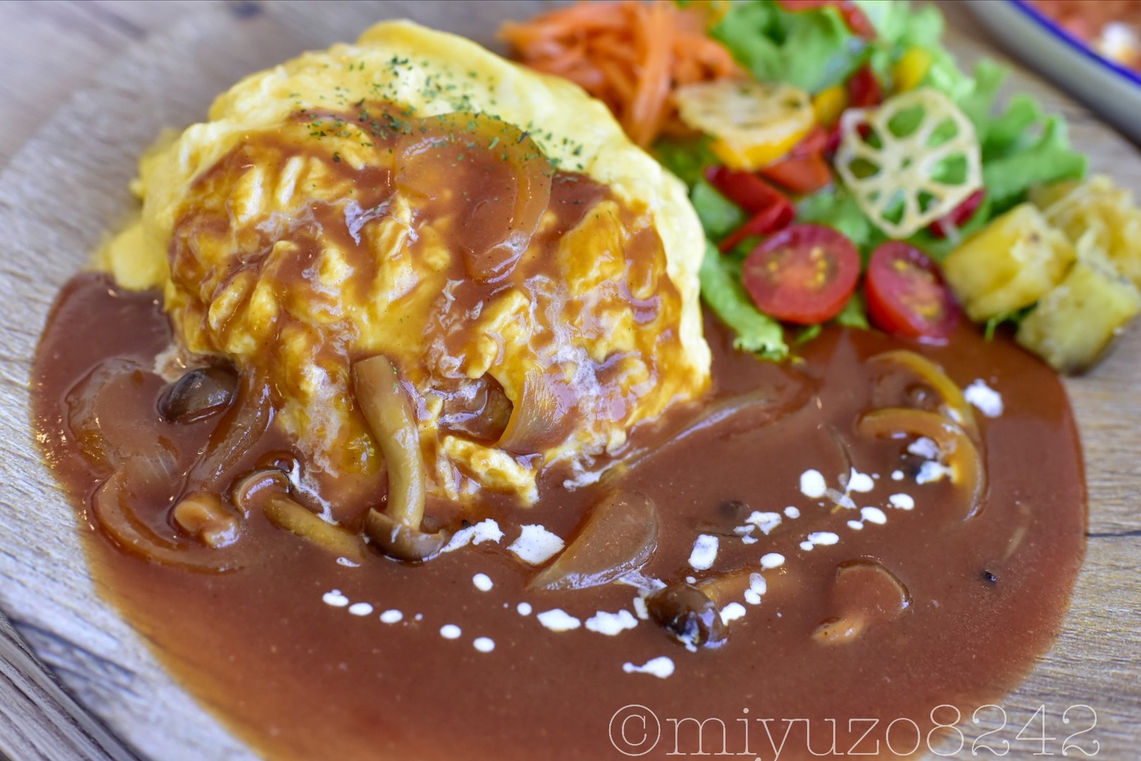 ふわふわ卵のオムライス!デミグラスのソースと合うように、中はケチャップライスではなくバターライス🍚