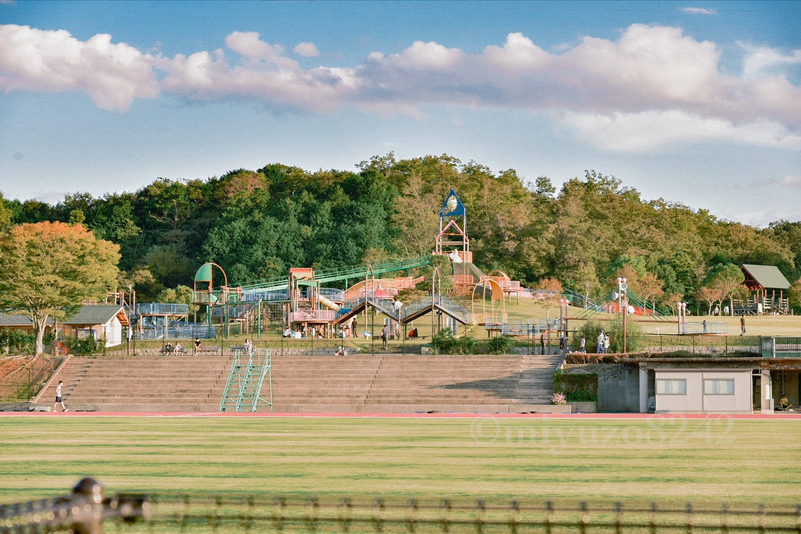 峰山途中ヶ丘公園は、総面積7.6ヘクタールの超広大な敷地で、走り回って運動不足を解消するのに十分すぎる広さ。