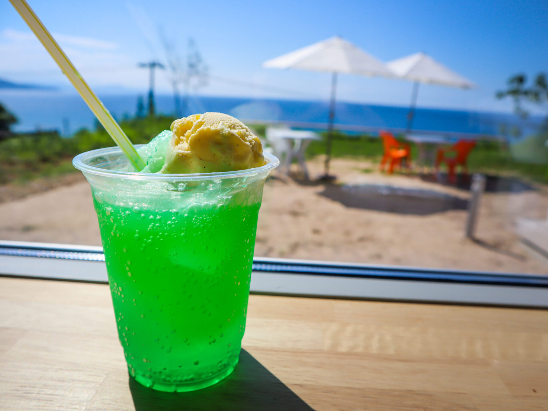 青い空にメロンソーダが映えました☺︎
