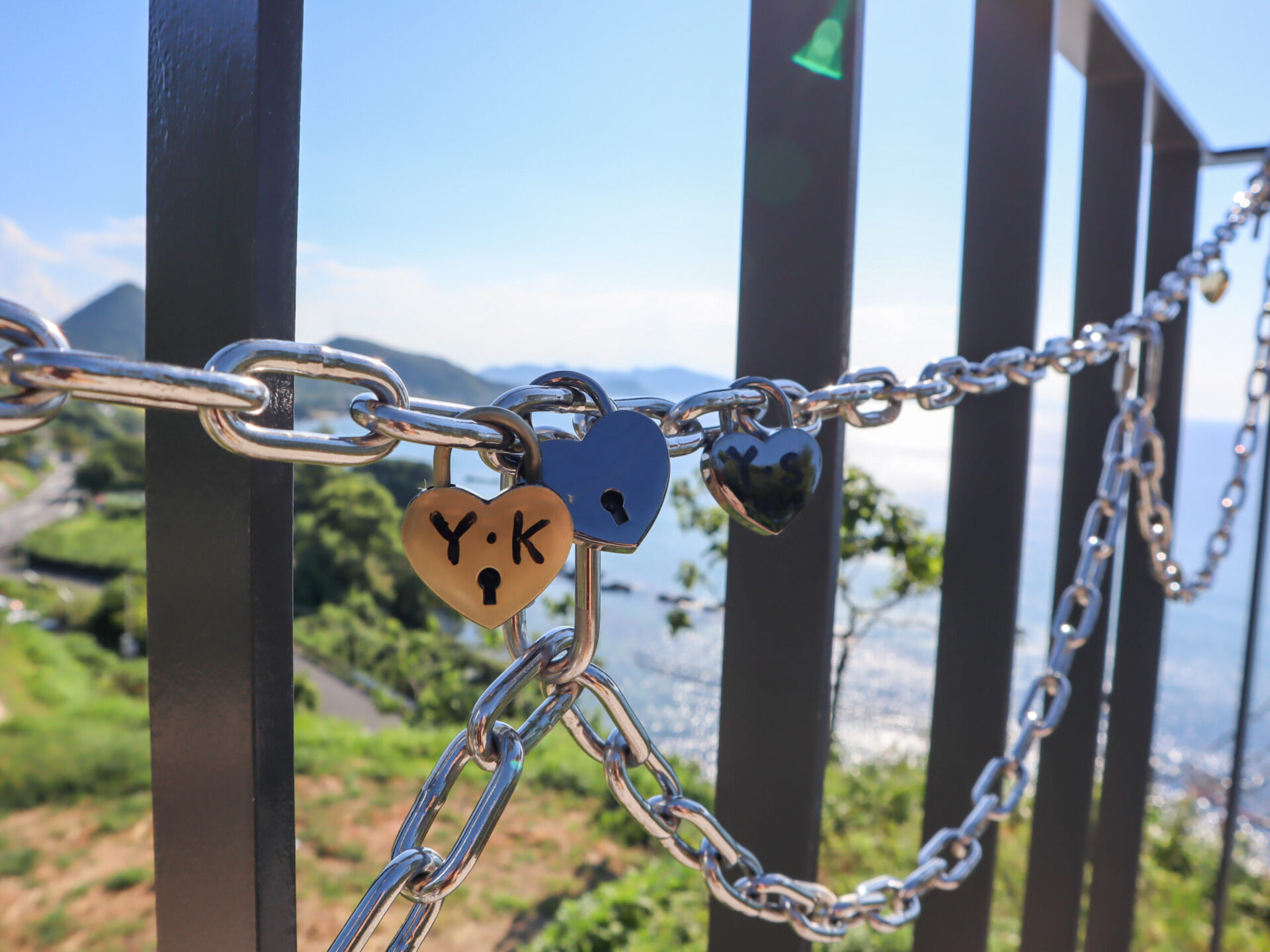展望台には鎖があって、ハートの南京錠が施錠されてた🔒