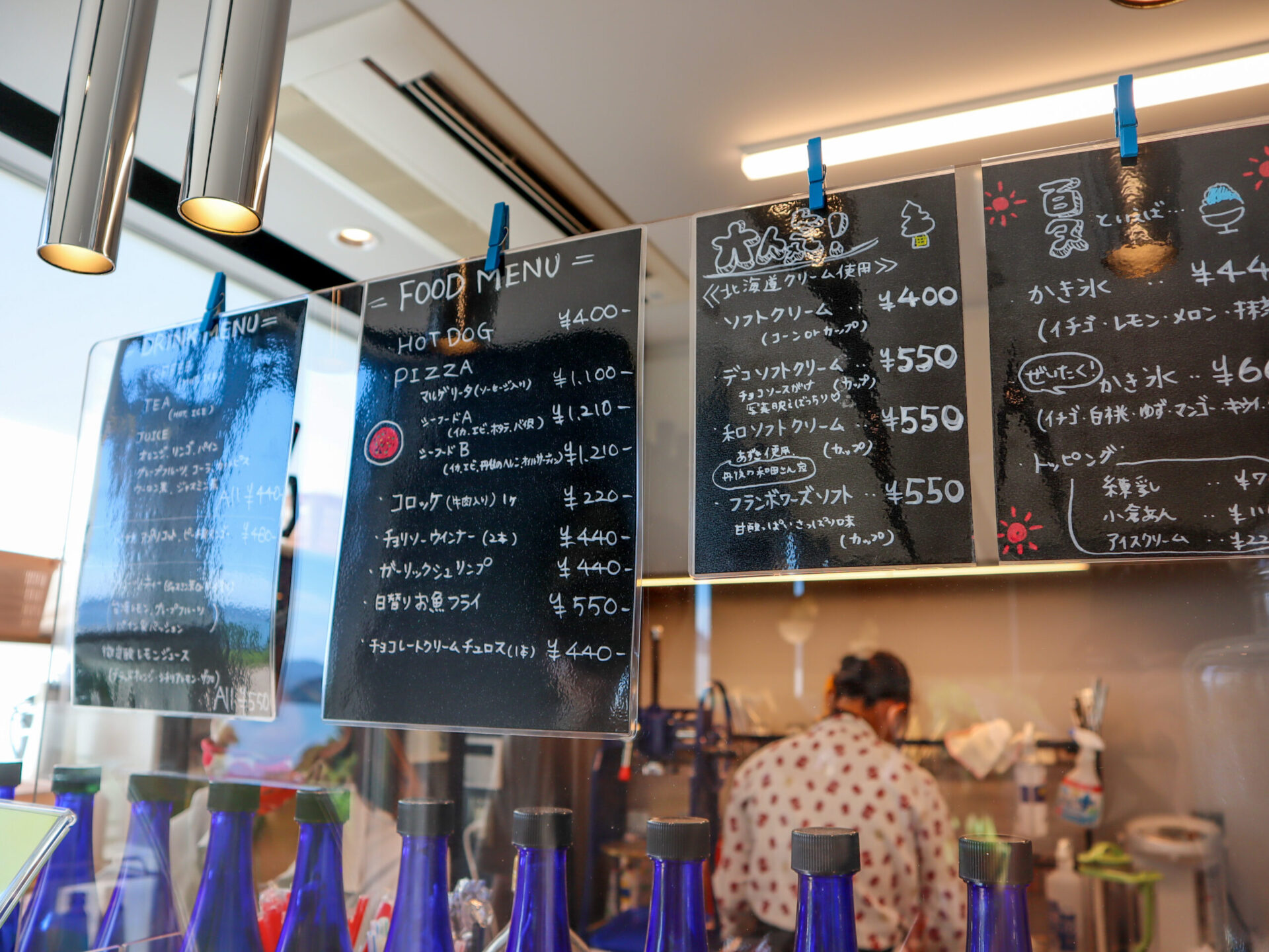 メニューはホットドッグやピザ、ソフトクリームやかき氷などなど🍧