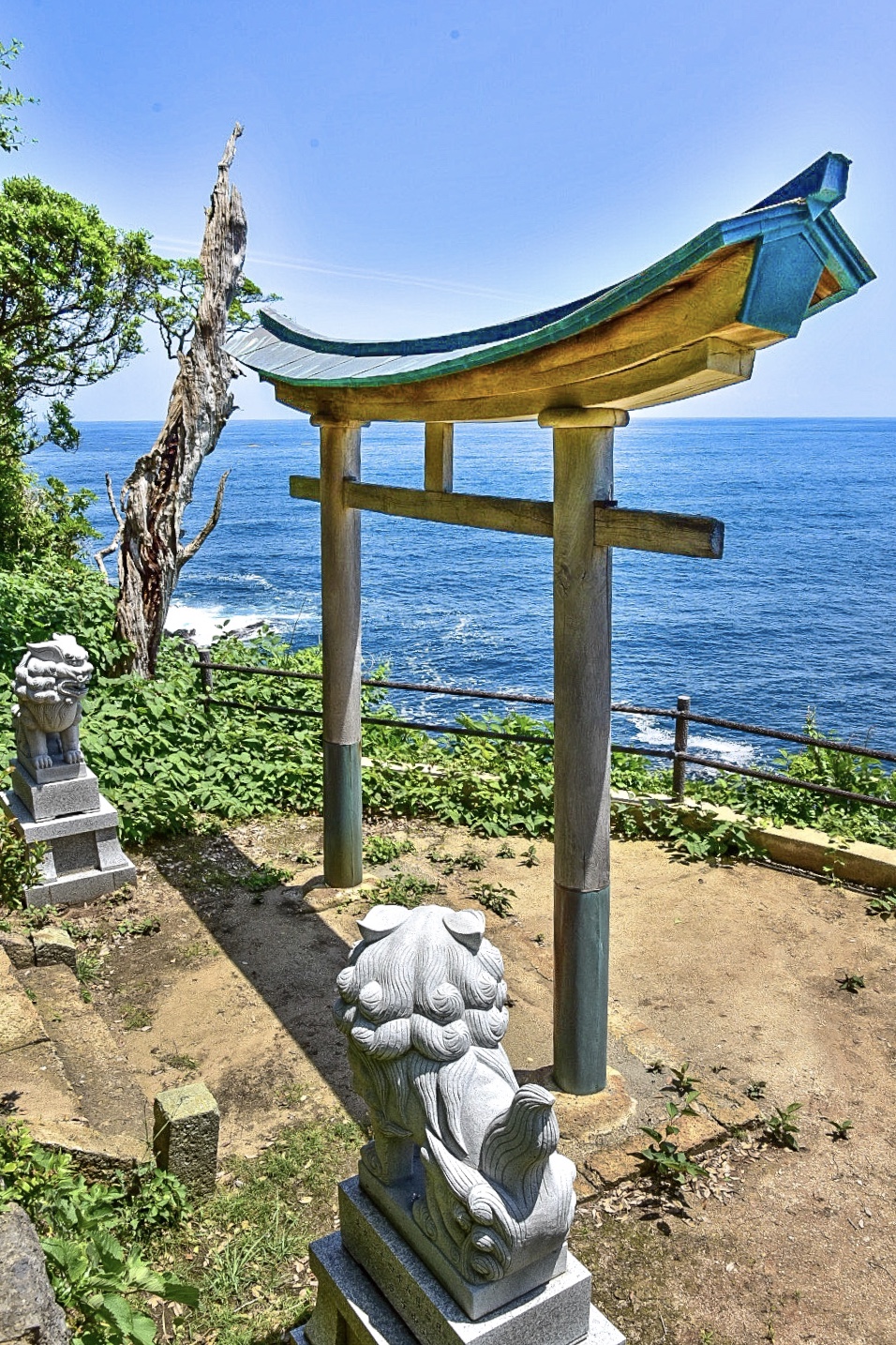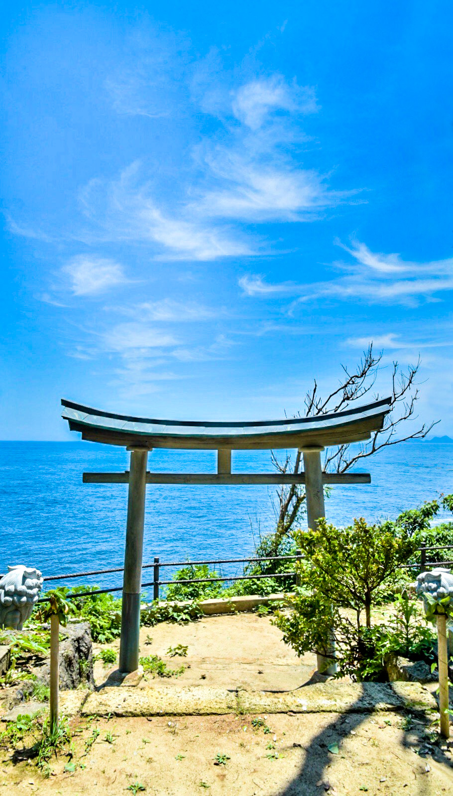 この神社には【徐福伝説】があって、大昔、秦の始皇帝に不老不死の薬草を探すように命じられた家来の徐福っていう人物がここ新井崎のハコ岩に漂着🚤徐福は日本に滞在して色んな技術を村人たちに教えて慕われ、この神社は徐福を海上安全や漁業、病気平癒の神として祀ってるとか(ृ ु *`ω、)ु ⋆゜