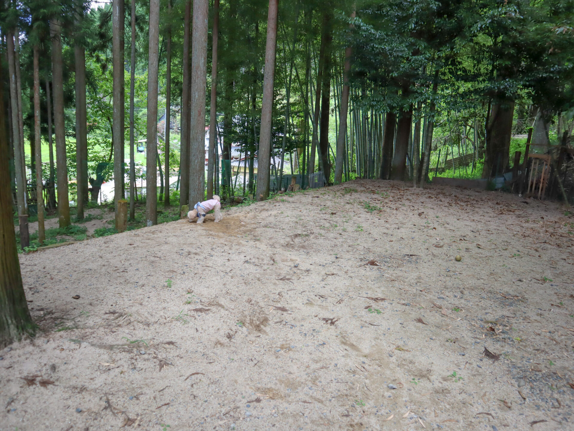 芝生じゃなくて砂やけど、走らせるには十分🐕