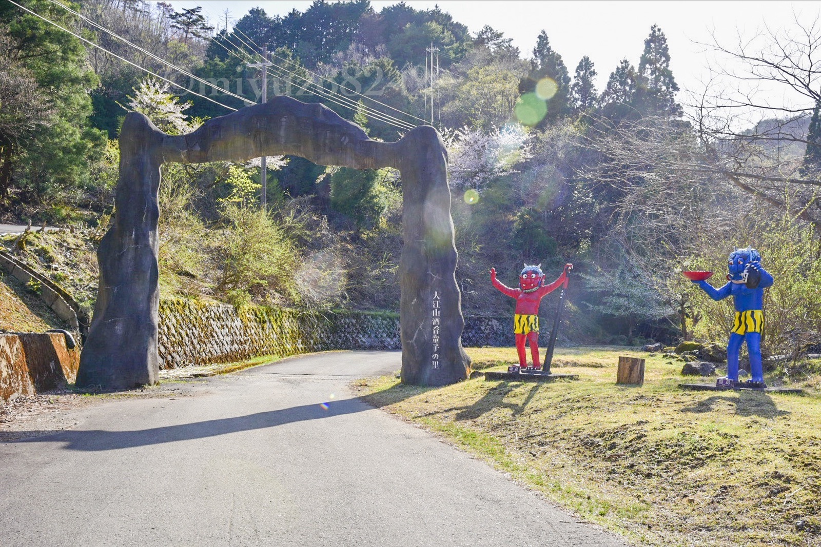 赤い鬼と青の鬼がいて、酒呑童子の里って書いてあるこの門の方へ進んでいく。