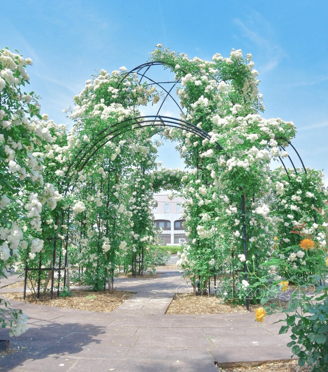 ピンクだけじゃなく白い薔薇のアーチもあってこちらも綺麗やった☺︎