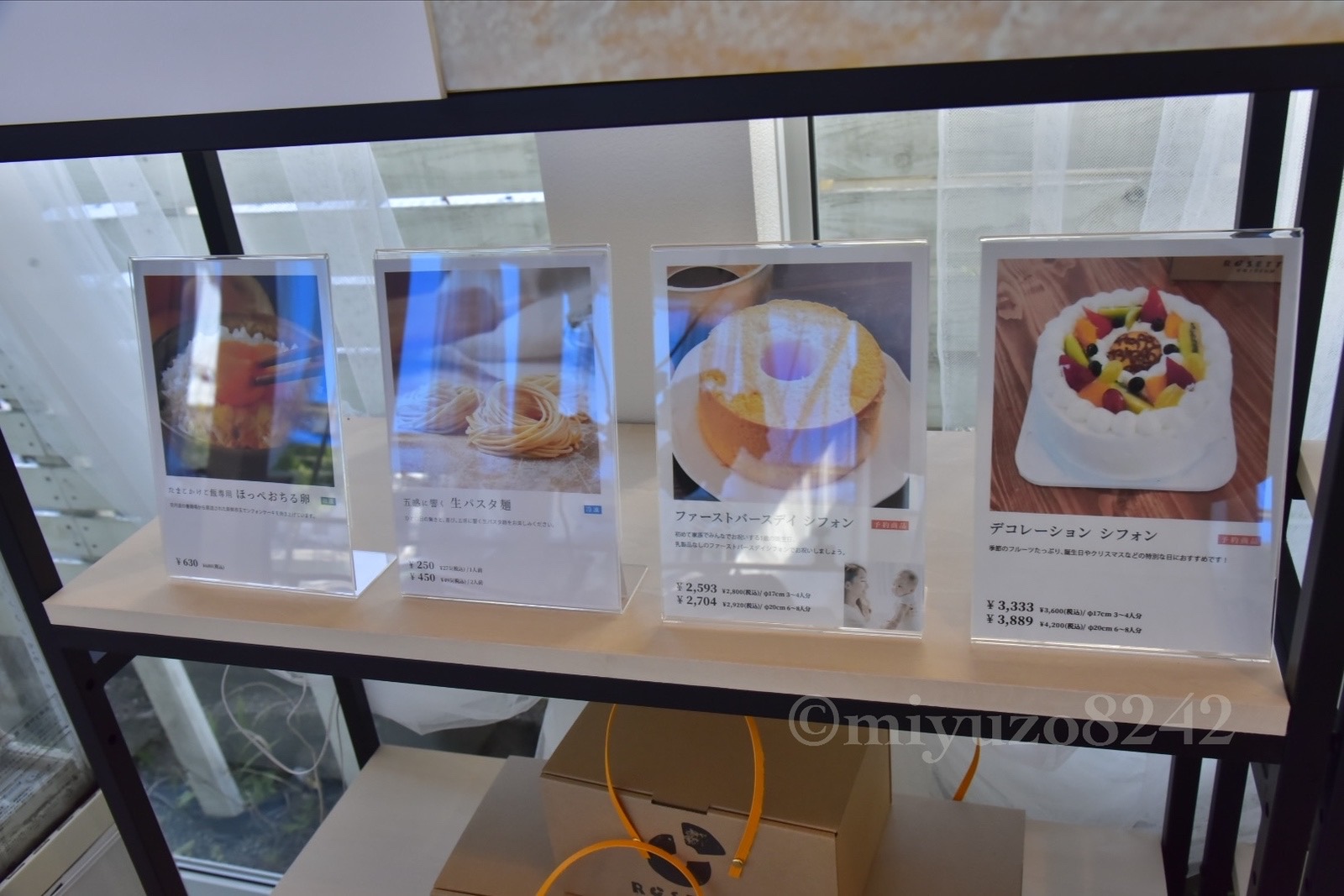 店内にはお土産に持って帰ることもできるテイクアウト用のシフォンケーキが並ぶ。