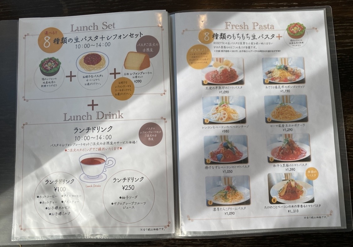 もちもちの生パスタもランチ時には食べられるということでメニューにはパスタの写真が並んでて、そっちも美味しそうだった〜♪