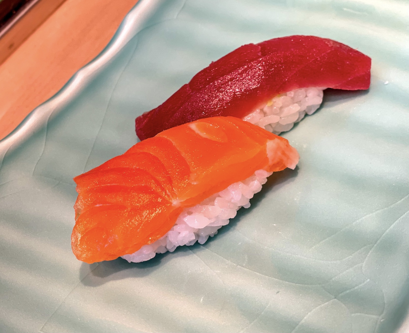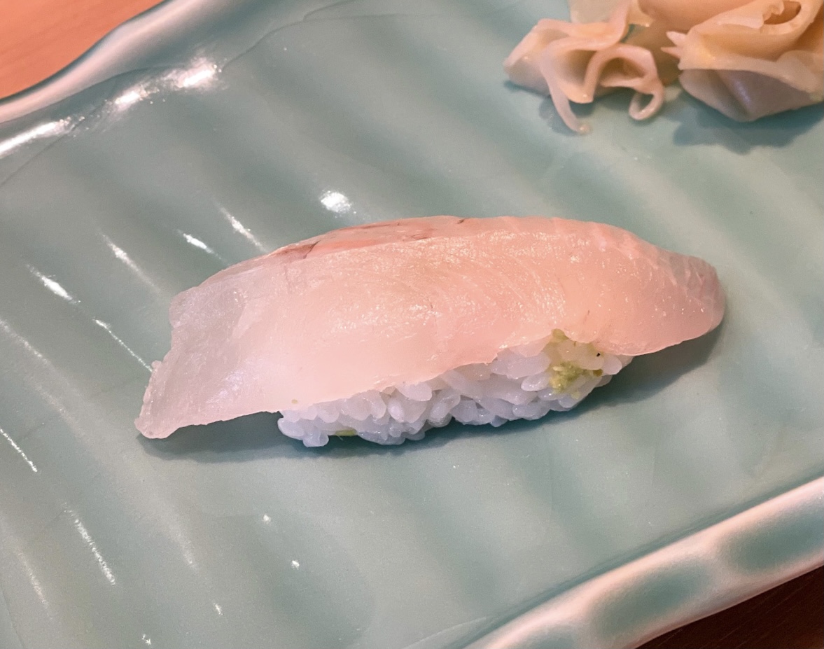 一貫ずつ目の前のお皿に置かれていくお寿司🍣
