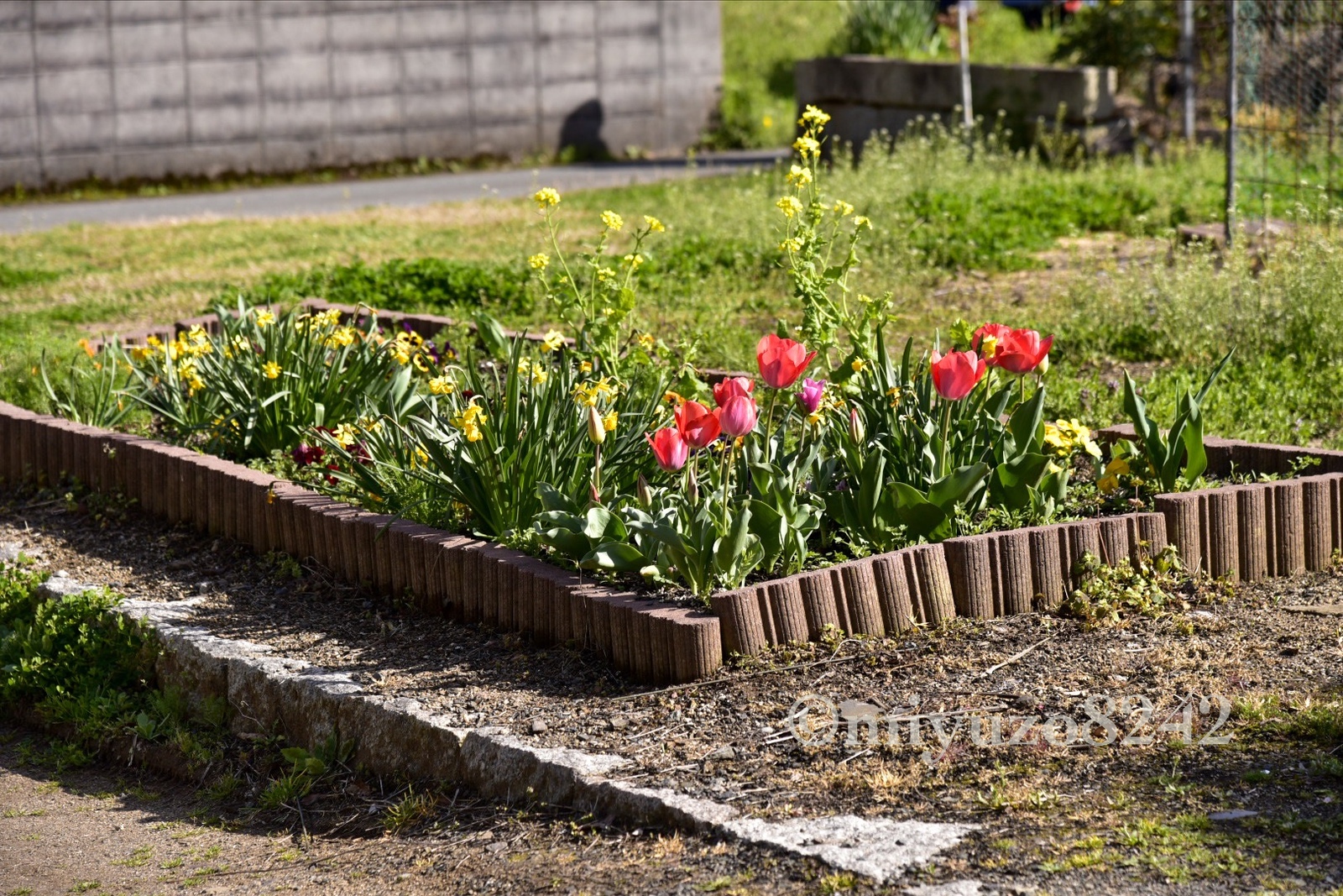 道の途中にはチューリップも咲いてる。ほのぼの散歩しながら🌷