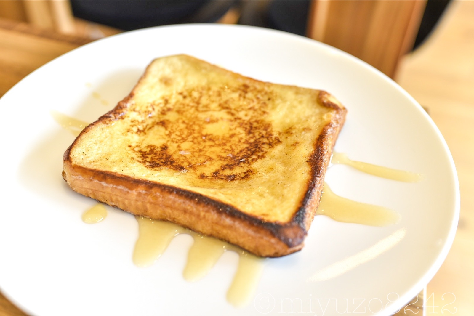 シンプルなフレンチトーストやけど、やっぱ家で作るやつより美味しい😌