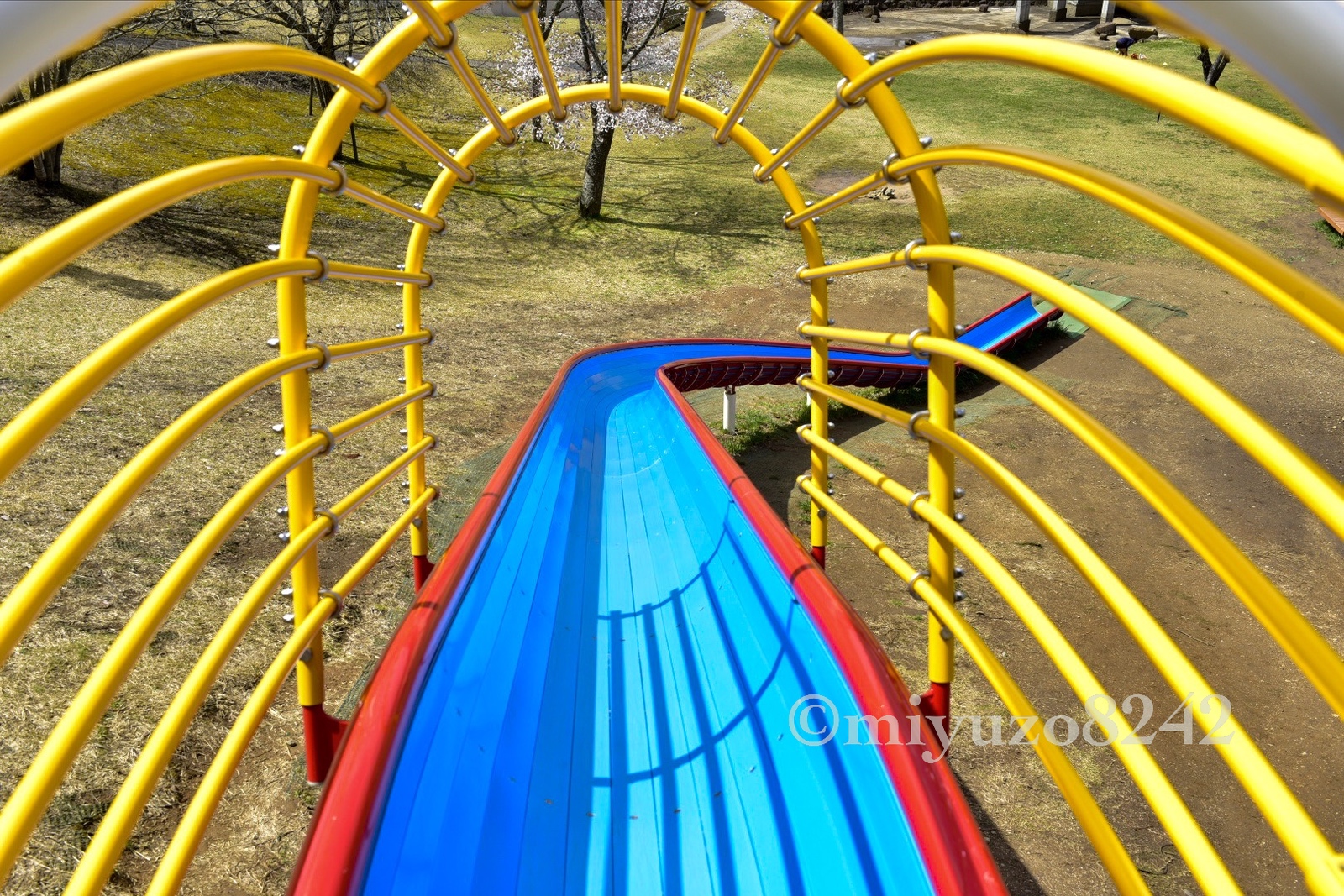 こちらは全面が芝で、45メートルのローラースライダーやコンビネーション遊具やジャブジャブ池など、こちらも人気のスポット☺️春夏には花壇に花もいっぱい咲いて綺麗🌸