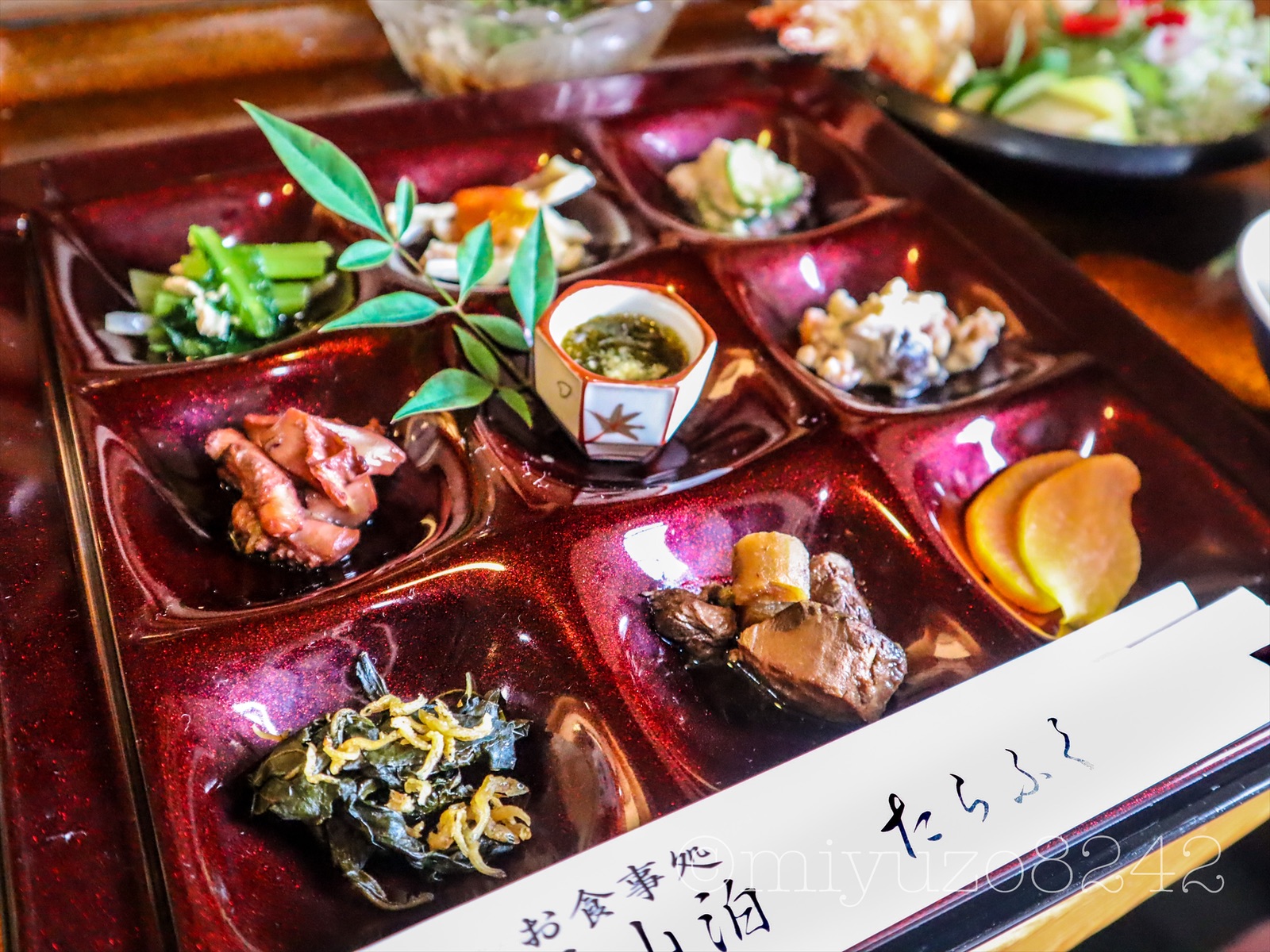 9つに仕切りられた器には彩りよく盛り付けられた日替わりの惣菜が!