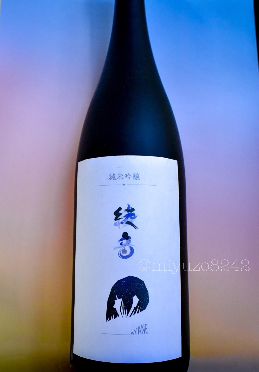 すでにラベルのデザインは学生とコラボしてるそうで、これが実際に大学生がラベルデザインしてリニューアルした日本酒、綾音☟